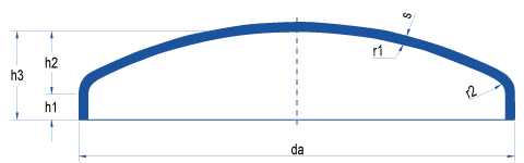 (r1 = da, r2 = 15 bis 50 mm) Diameter: 300  until   1600 mm